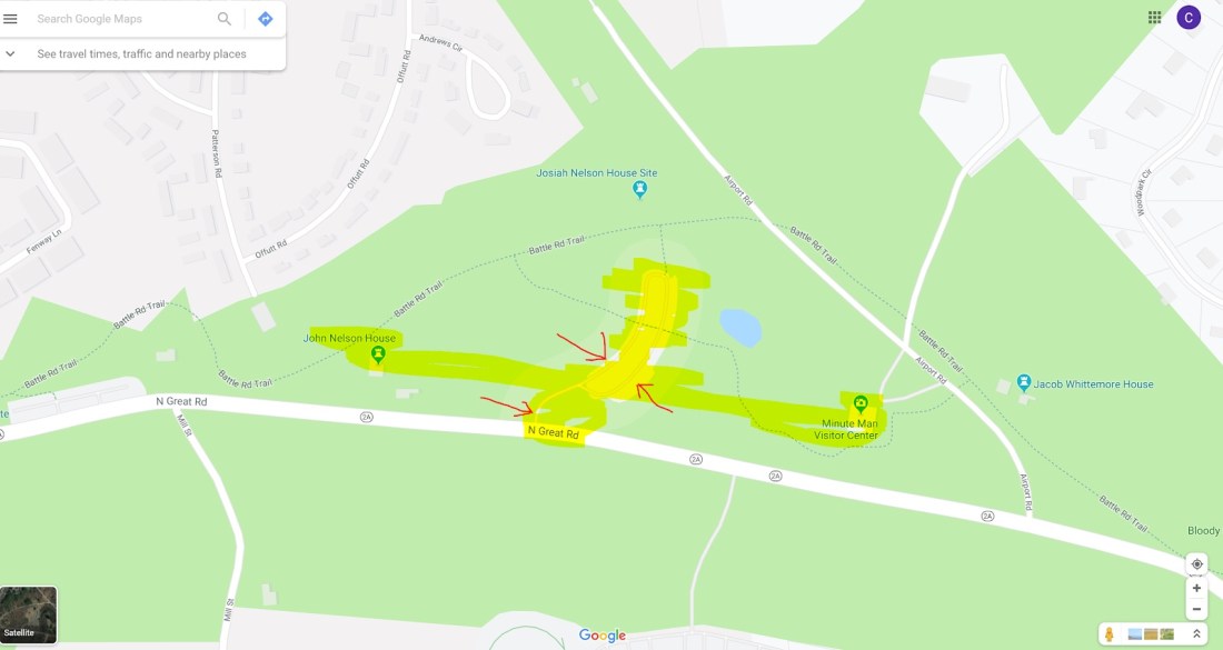 We will hike portions of the Battle Rd Trail and visit historic sites in the park, leaving from the parking lot Trail Head near the Josiah Nelson House Site, around 2miles max.
